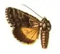 The wingspan is 30–34 mm. Adults are on wing from July to August depending on the location. There is one generation per year.