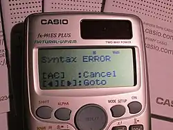A syntax error can occur on a calculator (especially a scientific or graphing calculator) when the input equation is incorrect in ways such as: