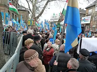 There have been complaints as, on this day, there are often protests for the autonomy of the Székelys, which have caused conflicts between the protesters and the Romanian authorities. In addition, the holiday has been attended earlier as well by Hungarian far-right parties and groups such as Jobbik and the Sixty-Four Counties Youth Movement.[1] Protests for the autonomy of the Székelys have also occurred in Hungary as a sign of support.[3]