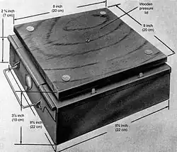 The T-IV was a Soviet anti-tank mine developed before and used during the Second World War. The mine has a metal case with a wooden pressure plate attached to the top of the mine. It is similar in configuration to the later TM-38.