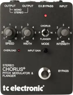 TC Electronic is located in Aarhus, Denmark, in the district of Risskov. It was founded by brothers Kim and John Rishøj, whose engineering goal was to produce guitar pedal effects which significantly reduced unwanted signal noise. The resulting product was the Stereo Chorus, Pitch Modulator and Flanger.[8] This became known by guitar players as "SCF".[9] TC Electronic has since produced a variety of guitar and bass effects and has also branched out into the area of broadcast and transmission.[10]