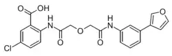 TM5441 is a drug which acts as an inhibitor of the serpin protein plasminogen activator inhibitor-1 (PAI-1). By inhibiting PAI-1, it increases activity of the enzymes tissue plasminogen activator and urokinase, which are involved in the blood clotting cascade. It has been researched for conditions such as hepatic steatosis and diabetic nephropathy, and while it has not been developed for medical use, it is widely used in scientific research.[1][2][3][4]