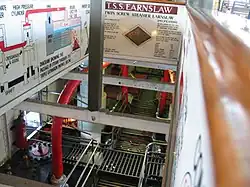 The Earnslaw is winched out of the lake on a cradle when major surveys are required. There is an historic slipway for this purpose at the south west corner of the Frankton arm of Lake Wakatipu. The slipway is equipped with a steam engine driven winch. The boiler and steam engine used to power the winch were originally in service on Lake Wakatipu in the paddle steamer Antrim, originally launched in 1869. The Antrim was dismantled from 1920, but the boiler and engine were recovered for use on the slipway. The Antrim engine is recognised as a significant part of New Zealand's engineering heritage.[16][17]