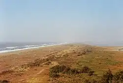 Table Bluff (Wiyot: Giloulh)[1] is a semi-flat terrace in Humboldt County, California, that terminates above the ocean in a dramatic, 165-foot (50 m) high cliff with views of the Eel River delta, the South Spit of Humboldt Bay, and the Pacific Ocean. It separates Humboldt Bay to the north from the Eel River to the south. It overlooks approximately 9,000 acres (36 km2) of wildlands administered by various federal and county agencies. It is 12 miles (19 km) south of Eureka and 5.5 miles (8.9 km) west of US Highway 101. Table Bluff County Park provides access to the South Spit. The park is also used as a hang-gliding and paragliding staging area. The federally endangered western lily, Lilium occidentale, is found growing on Table Bluff at Table Bluff Ecological Reserve.