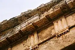 In classical architecture, a taenia (Latin: taenia, from Ancient Greek ταινία (tainía) 'band, ribbon') is a small "fillet" molding near the top of the architrave in a Doric column.[1] The entire structure above the columns is called the entablature. It is commonly divided into the architrave, directly above the columns; the frieze, a strip with no horizontal molding, which is ornamented in all but the Tuscan order; and the cornice, the projecting and protective member at the top.
