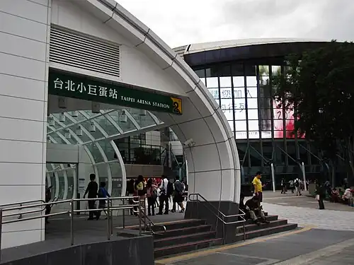 Taipei Arena (Chinese: 台北小巨蛋; pinyin: Táiběi Xiǎojùdàn) is a metro station in Taipei, Taiwan served by Taipei Metro. It is a station on Songshan–Xindian line. The station opened on 15 November 2014.