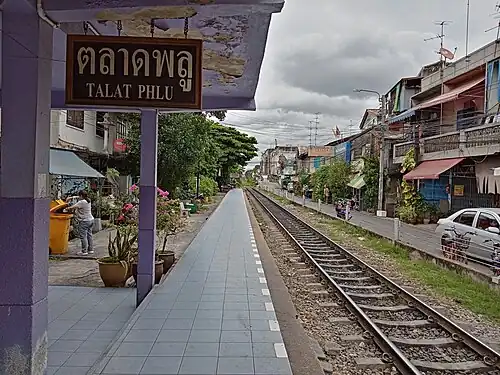 Talat Phlu railway station is a railway station located in Talat Phlu subdistrict, Thon Buri district, Bangkok. It is a class 2 railway station and serves Talat Phlu community. It is located in a different location to Talat Phlu BTS station. Currently, 34 rail services operate at the station.[1]
