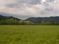 The Tallassee site is surrounded by mountains on all sides. The Great Smoky Mountains rise to the north and east and the Unicoi Mountains rise to the south and west. The Little Tennessee provides the immediate boundary between the Great Smoky Mountains National Park and the Cherokee National Forest.