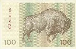 The talonas (from a Lithuanian word for "coupon")[1] was a temporary currency issued in Lithuania between 1991 and 1993.[2] It replaced the Soviet ruble at par and was replaced by the litas at a rate of 100 talonai = 1 litas.[3] The talonas was only issued as paper money.