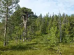 The nature reserve contains what is arguably the southernmost reaches of the Scandinavian Mountains in Sweden. The nature is barren and characterised by sparse vegetation, except for little valleys where old-growth forest thrive. The higher ground contains several species which here have their southernmost range in Sweden, including Alpine azalea, Alpine bearberry and Agrostis mertensii. Moss and lichen grow rather abundantly due to the high degree of air moisture. The nature reserve also supports a rich fauna and provides a habitat for species like European pine marten, stoat, brown bear, Eurasian lynx, gray wolf and wolverine. The bird life includes several species of owls and other birds of prey as well as Western capercaillie, black grouse and hazel grouse.[1]