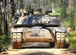 After an internal debate on whether the Army should continue to operate tanks as part of its force structure, in 2004 the Australian Government decided to replace the Leopards with a small fleet of American M1A1 Abrams tanks to provide close support for infantry when operating in jungle or urban areas.[107] After 31 years of service the Leopards were subsequently replaced by 59 M1A1 Abrams AIM, which began entering service in 2007.[61][108] Seven M88A2 Hercules Armoured Recovery Vehicles (ARVs) were also acquired.[109] The Leopards never saw operational service, although during the 1999 East Timor crisis the regiment was placed on standby to deploy in the event the conflict escalated, while it was not deployed during Australia's involvement in the 2003 invasion of Iraq.[110][111] By this time the Leopards were considered unsuitable for deployment in a high threat environment.[112][113] As of 2007 the 1st Armoured Regiment, located in Darwin as part of the mechanised 1st Brigade, was the only armoured unit in the Australian Army equipped with main battle tanks, operating the M1A1 Abrams AIM.[114] A small number of M1A1s were also operated by the School of Armour at Puckapunyal for training purposes.[110]