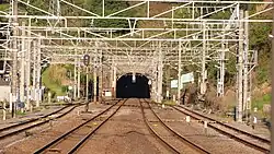 Tanna Tunnel (丹那トンネル, Tanna-tonneru) is a railroad tunnel in Shizuoka Prefecture, Japan operated by JR Central’s Tōkaidō Main Line. This 7.8 km long tunnel shortened the trunk route between Tokyo and Kobe by omitting a detour round the mountains between Atami and Numazu.[1]