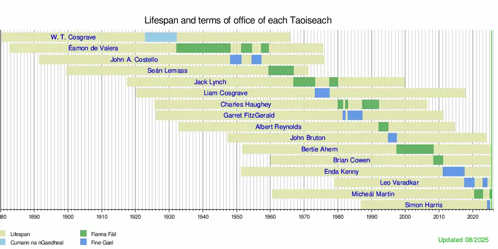 - ^ "Former Taoisigh". www.gov.ie. Government of Ireland. 1 November 2018. Archived from the original on 4 March 2020. Retrieved 14 February 2024.