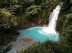 The scientific name Tlalocohyla celeste for the species was chosen because of the light blue coloration observed in the axillary membranes and male vocal sac.[2] The name was given as a tribute to the turquoise waters of a nearby river, the Río Celeste.[3]
