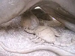 Whether as a painting or as carved monument, a depiction of the tauroctony scene belonged to the standard furniture of every mithraeum. At least one depiction would be mounted on the wall at the far end of the space where ritual activity took place, often in a niche dressed to be especially cavelike. Richly furnished mithraea, such as one in Stockstadt am Main, had multiple cult reliefs.[3]