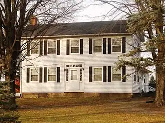 The Taylor–Van Note House, also known as Blairs Ferry Wayside Inn/Vanesther Place, is a historic building located in Cedar Rapids, Iowa, United States. Charles Taylor had this two-story, wood frame, vernacular Greek Revival house built in 1846. The family owned the house until 1888 when it was sold to Lazarus Van Note, whose family owned it as late as 1985. Oral legend has it that Taylor rented the front rooms to travelers as they passed through the region. It was located close to James Blair's ferry across the Cedar River, which is why it has long been known as the Blairs Ferry Wayside Inn.[2] The house was built of heavy timbers and exemplifies a traditional I-house.[2] It features two rooms on both floors across its length, and one room deep. The main door is flanked by sidelights and a transom across the top. The house was listed on the National Register of Historic Places in 1985.[1]