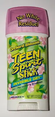 ![]() An earlier Teen Spirit Stick deodorant, with an "Orchard Blossom" scent | |