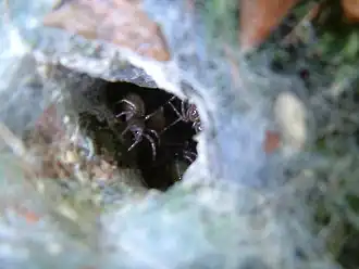 The rare spider species Tegenaria silvestris is mostly found in caves, or on dumps; sometimes it occurs on forest edges, or in dry forests. It constructs its web under tree trunks and dead wood, and in tree caves.