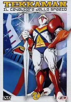 Tekkaman: The Space Knight (宇宙の騎士テッカマン, Uchū no Kishi Tekkaman) is a Japanese anime produced by Tatsunoko Production in 1975.[2] A short-lived English adaptation aired in the U.S. in 1984. The first 13 episodes streamed in Japanese with English subtitles on Anime Sols as of spring 2013 exclusively in North America, but the website is now defunct. All 26 episodes were streaming on Viewster in several countries until the website went defunct in 2019. In the 1990s, it was followed by the much more popular Tekkaman Blade, which was dubbed in the U.S. by Saban as Teknoman.