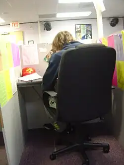 In Finland, call centers employ an estimated 100,000 people, but most work with customer relations in larger companies. 10,000 people are working for companies involved with telemarketing. Telemarketing often is the first job young people get. But it is also a way out or back to the labour market for handicapped, immigrants and pensioners, In Finland, the profession has had a bad reputation because of work-related injuries. The strain on neck, shoulders, eyes and ears can be considerable. Health problems have however been reduced considerably thanks to lightweight headsets, ergonomic working stations and more tasks, like documentation, done automatically by computers.[23]