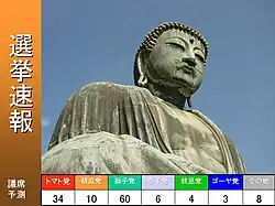 - ^ NHKは何を伝えてきたか-NHKテレビ番組の50年, NHK. Quote: "何かが起これば、頼りになるのがテレビだ。1997年の秋、NHKは台風が本土を直撃しようとした時、あえてテレビ画面の隅を使って、逆L字型画面で台風情報を繰り返し放送した。緊急の情報を放送するには、このマルチ画面は非常に有効だった。これは結果として、データ放送の価値とその利用方法を周知させる結果となった。" (If something occurs, the television is reliable. In the Fall of 1997, as a typhoon headed towards the mainland, NHK repeatedly broadcast typhoon information in the corner of the TV screen within a reversed L-shape. This display was very effective. As a result, this demonstrated the value of the utilisation of data broadcasting to the masses.)