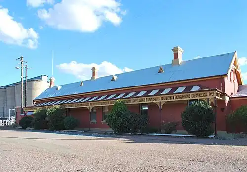 The Temora railway station is a heritage-listed former railway station and now youth hub and mixed-use building located on the Lake Cargelligo railway line in Temora in the Temora Shire local government area of New South Wales, Australia. The station was built from 1893 to 1915 and served the Riverina town of Temora between 1 September 1893 until its closure for passenger services in the late 1970s. The station is also known as the Temora Railway Station group. The property was added to the New South Wales State Heritage Register on 2 April 1999.[1][2]