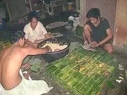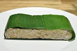 In Javanese, the term gódhóng means 'leaf'.[40] Traditionally tempeh is wrapped in organic banana leaf, gódhóng waru (Hibiscus tiliaceus leaf) or gódhóng jati (teak leaf).[41]