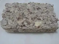 Tempe or tempeh (/ˈtɛmpeɪ/; Javanese: ꦠꦺꦩ꧀ꦥꦺ, romanized: témpé, Javanese pronunciation: [tempe]) is a traditional South-east Asian food made from fermented soybeans.[1] It is made by a natural culturing and controlled fermentation process that binds soybeans into a cake form.[2] A fungus, Rhizopus oligosporus or Rhizopus oryzae, is used in the fermentation process and is also known as tempeh starter.