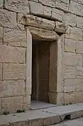 The Temple of Anahita is a large rectangular room in the shape of a cube in a depression 6 meters above the ground, each side of which is nearly 14 meters. It is built of carved stones without mortar, double-walled, and in the Achaemenid architectural style. These stones are connected to each other with iron fasteners. A staircase from the palace was also connected to this temple. The temple has no roof and the purpose was to bring the water of the Shapur River, which flows 250 meters away, into the temple, so that after flowing inside the temple, it would be discharged through a Qanat.[8][9]