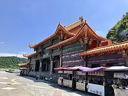 In the 1980s, the temple was popular among gamblers playing dajiale (a type of illegal lottery) and sex workers. That led to food stalls flocking into the temple parking lot to cater to the visitors. According to Shimen District mayor Wu Zong-ren, there were roughly one hundred stalls outside the temple during its peak.[3] In particular, the makeshift market's zongzi became very famous: a stall named "Liu's Zongzi" grew into a chain store with branches throughout Taipei.[4] The temple's popularity diminished when Provincial Highway 2 was moved northwards onto a wider bridge, which redirected the traffic away from the temple and blocked its view of the ocean.[2]