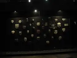 Another theme exhibited in this hall is autosacrifice, a ritual that was conducted in private as a personal act of communication with the gods. Widespread throughout the entire population, this practice was performed by perforating certain fleshy parts of the body—such as the earlobes, lips, tongue, chest, calves, et cetera—with obsidian blades, agave needles or bone perforators. Once the implement was covered with blood, it was inserted in straw balls called Zacatapayoli. The entirety was probably placed in ceremonial boxes—tepetlacalli—as an offering to the gods. Objects associated with human sacrifice are the "face blades" or knives decorated with eyes and teeth, as well as skull masks. Other ceremonial items include musical instruments, jewelry, and braziers for the burning of copal.[27]