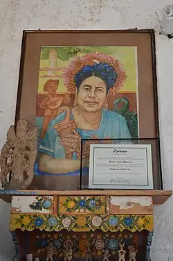 As she developed her ceramic work and it became known, she became relatively famous and wealthy for rural Oaxaca standards, able to send her sons to the city of Oaxaca for their education. However, she remained on the same land that she bought with her husband, Antonio Garcia Reyes, before she became famous but used the money she earned to build on the property and buy farm animals.[2] This compound is still the home to most of the family and consists of two lines of buildings facing a courtyard, separated from the street by a wall.[2][4]