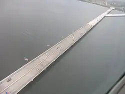 The Teodoro Moscoso Bridge (Spanish: Puente Teodoro Moscoso) is a bridge in Puerto Rico. It works as an extension of PR-17, also known as the Jesus T. Piñero Expressway, connecting this thoroughfare with the Román Baldorioty de Castro Expressway (PR-26). It crosses the San José Lagoon thereby linking Hato Rey and Rio Piedras in San Juan to Isla Verde in Carolina. The bridge has become the new entrance to the Luis Muñoz Marín International Airport. It was opened on February 28, 1994 under the administration of Governor Pedro Rosselló, this construction being the first to be held under a Public Private Partnership in Puerto Rico.[2] The bridge consists of four lanes, electronic signs, a toll plaza with a fee of $3.65 in each direction.[3] The bridge has flagpoles on both sides with alternating American and Puerto Rican flags. The bridge accepts AutoExpreso, Puerto Rico's toll transponder system.[4]