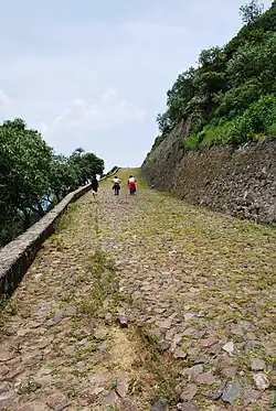 less than half of the path leading to the site from the valley below
