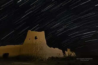 A large Sassanian period building, built with large baked bricks and termed a Palace by the excavators, was explored on a hillock near the main mound. It contained large (6 feet in diameter) ornamented stucco columns. The building was decorated with polychrome painting. Finds included a number of plaques, a bust, and a few copper coins.[29][1][30]