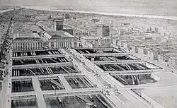 Planning for the development began long before the terminal was completed. In 1903, the New York Central Railroad created a derivative, the New York State Realty and Terminal Company, to oversee construction above Grand Central's rail yards.[6] The New Haven Railroad joined the venture later on.[4] One early proposed name for this area was "Pershing Square", a name that was ultimately applied to the southern side of Grand Central Terminal.[7] The blocks on the north side of the terminal were later dubbed "Terminal City" or the "Grand Central Zone".[2][3][8]