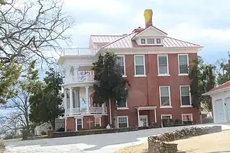 The house is prominently visible from afar upon a hill and itself has views over a plain and to the Arkansas Mountains.[2]