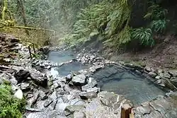 Terwilliger Hot Springs, also known as Cougar Hot Springs, are geothermal pools in the Willamette National Forest in the U.S. state of Oregon, 53 miles (85 km) east of Eugene.[1] The springs drain into Rider Creek, which in turn drains into Cougar Reservoir.[1] They are about a quarter mile from Forest Service Road 19, also known as Aufderheide Memorial Drive.[1][2]