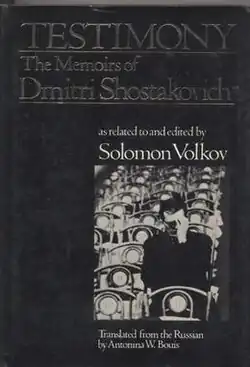 Testimony (Russian: Свидетельство, romanized: Svidetel'stvo) is a book that was published in October 1979 by the Russian musicologist Solomon Volkov. He claimed that it was the memoirs of the composer Dmitri Shostakovich, who had died in 1975. Since its publication, its portrayal of the composer and his views has been controversial: the Shostakovich of the book was sometimes critical of fellow composers and most notably was strongly anti-Soviet in his views. The book also contained comments on his own music, suggesting that it was intended as veiled criticism of the Soviet authorities and support for the dissident movement. The authenticity of the book is still disputed.