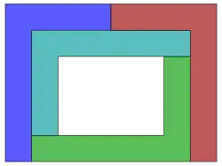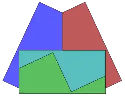 In geometry, a tetrad is a set of four simply connected disjoint planar regions in the plane, each pair sharing a finite portion of common boundary. It was named by Michael R. W. Buckley in 1975 in the Journal of Recreational Mathematics. A further question was proposed that became a puzzle, whether the 4 regions could be congruent, with or without holes, other enclosed regions.[1]