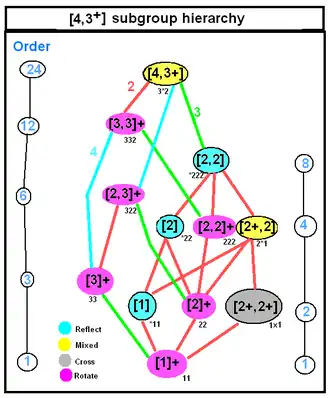 | Th | [3+,4] | 3*2 | m3 | 2 | A4 ×Z2 | 24 | 1 | ||
