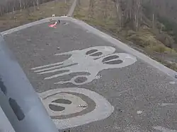 The "Aliens" stone arrangement at the Bottrop Tetrahedron was created by Fred Fischer, a resident of Bottrop, from 2004 to early 2009. He arranged different coloured gravel stones to create several large stereotypical representations of "aliens" below the tetrahedron. This independent design was part of a series of activities in which other IBA Emscher Park landmarks, such as the Brockenscheidt slag heap of the Waltrop colliery with the track tower by artist Jan Bormann, were also redesigned by citizens.