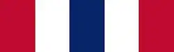 The pendant is suspended by a ring from a rayon moiré ribbon 1+3⁄8 inches long 1+3⁄8 inches and wide, composed of five vertical stripes of Old Glory Red #67156 (5⁄16 inch), White #67101 (1⁄4 inch), Old Glory Blue #67178 (1⁄4 inch), White (1⁄4 inch), and Old Glory Red (5⁄16 inch).[3]