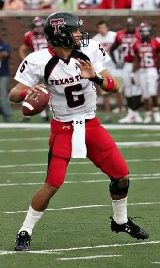 The Texas Tech Red Raiders football statistical leaders are individual statistical leaders of the Texas Tech Red Raiders football program in various categories,[ 1] including passing , rushing , receiving , total offense , defensive stats, and kicking . Within those areas, the lists identify single-game, single-season and career leaders. The Red Raiders represent Texas Tech University in the NCAA 's Big 12 Conference .