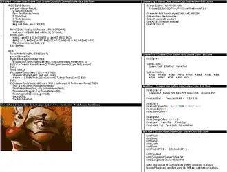 Screenshot of the desktop of an Oberon System showing an image and several text viewers