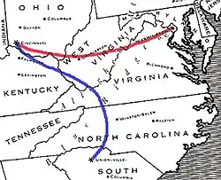 A second test flight, at the suggestion of Prof. Henry, was made from Cincinnati and was to return him to the eastern seaboard. For this flight he used the smaller balloon Enterprise.[18] His flight took off on the early morning of April 19, 1861, two days after Virginia had seceded from the Union. The flight misdirected him to Unionville, SC, where he was put under house arrest as a Yankee spy.[19] Having established his identity as a man of science, he was allowed to return home, where he had received word from Secretary of the Treasury Salmon P. Chase to come to Washington with his balloon. The American Civil War permanently ended Lowe's attempt at a transatlantic crossing.