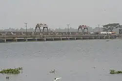 The Thanneermukkom Bund (Thannermukkom Salt Water Barrier) was constructed as a part of the Kuttanad Development Scheme to prevent tidal action and intrusion of salt water into the Kuttanad low-lands across Vembanad Lake between Thannermukkom on west and Vechur on east. Thanneermukkom Bund was constructed in 1974 and is functional since 1976. It is the largest mud regulator in India. This barrier essentially divides the lake into two parts - one with brackish water perennially and the other half with fresh water fed by the rivers draining into the lake.