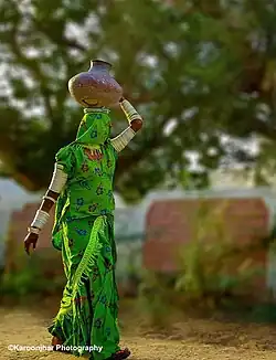 The Thar live in the harsh environment of the Thar Desert, therefore they spend a considerable amount of time fetching water for themselves or their animals.[6] The Thari marry early, often during teenage years.[7] They wake up early and herd the animals with the females waking up earlier than the men.[8] The Thari are known for their carpet industry, and earlier in history they used to make shawls.[9] The Thari also celebrate Lok Mela, along with the Sindhis.[10]