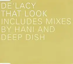 "That Look" is a song by American house-music group De'Lacy featuring vocals by lead vocalist Rainie Lassiter, and was released in 1996. Kevin Hedge and Josh Milan wrote the lyrics, which was published by Warner Chappell Music Ltd., and Blaze helmed the production. It was a sizeable hit in clubs in both the UK and US, and charted at number 19 on the UK Singles Chart, but fared better on the UK Dance Chart, reaching number two.[1] In Italy, the single was a top 30 hit, while on the Eurochart Hot 100, it peaked at number 41 in September 1996. In the US, it peaked at number 27 on the Billboard Hot Dance Club Songs chart.[2] A music video was also produced to promote the single.