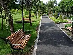 Coconut garden was designed by maintaining the original style and installing benches, a pedestrian way and small bridges crossing gutters.
